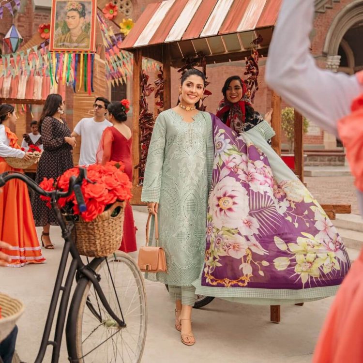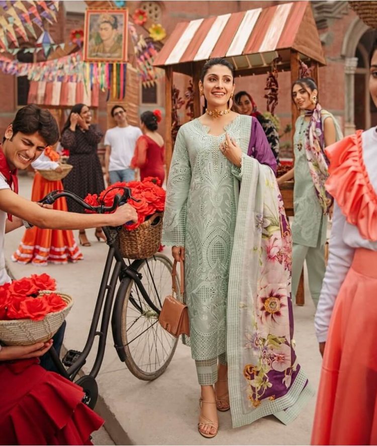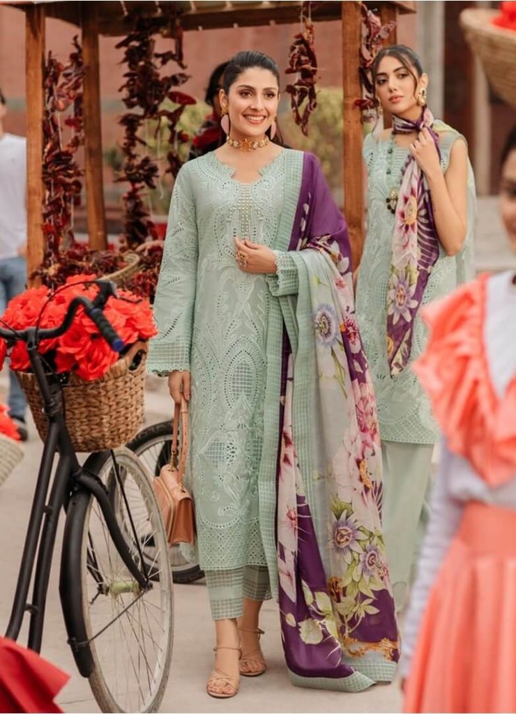 Boring Embroidered Lawn Front Boring Embroidered Lawn Sleeve Digital Printed Poly Lawn Dupatta Dyed Lawn trouser and backside
